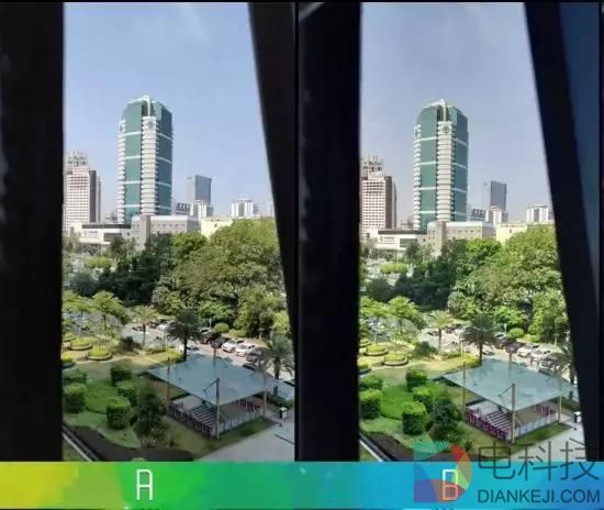 第三组照片在未放大情况下,A拍摄远景时,阴影部分显得重而深,而且绿色树木显得枯黄。B在拍摄远景时,保留了更多地细节,自然本身的颜色。在放大之后,A对于建筑物上更像是保留了原始颜色,也比B更清晰。在动景上B要好于A。