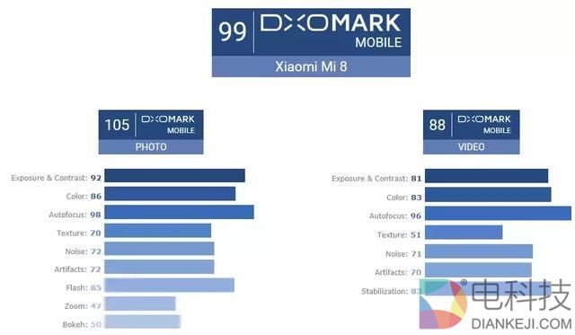 发布会时,雷军也称小米8的拍照方面在DoX榜上得分为105分,比iphone X还高出4分。小米8整体综合得分为99分。