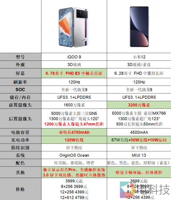 左:iQOO 9;右:小米12