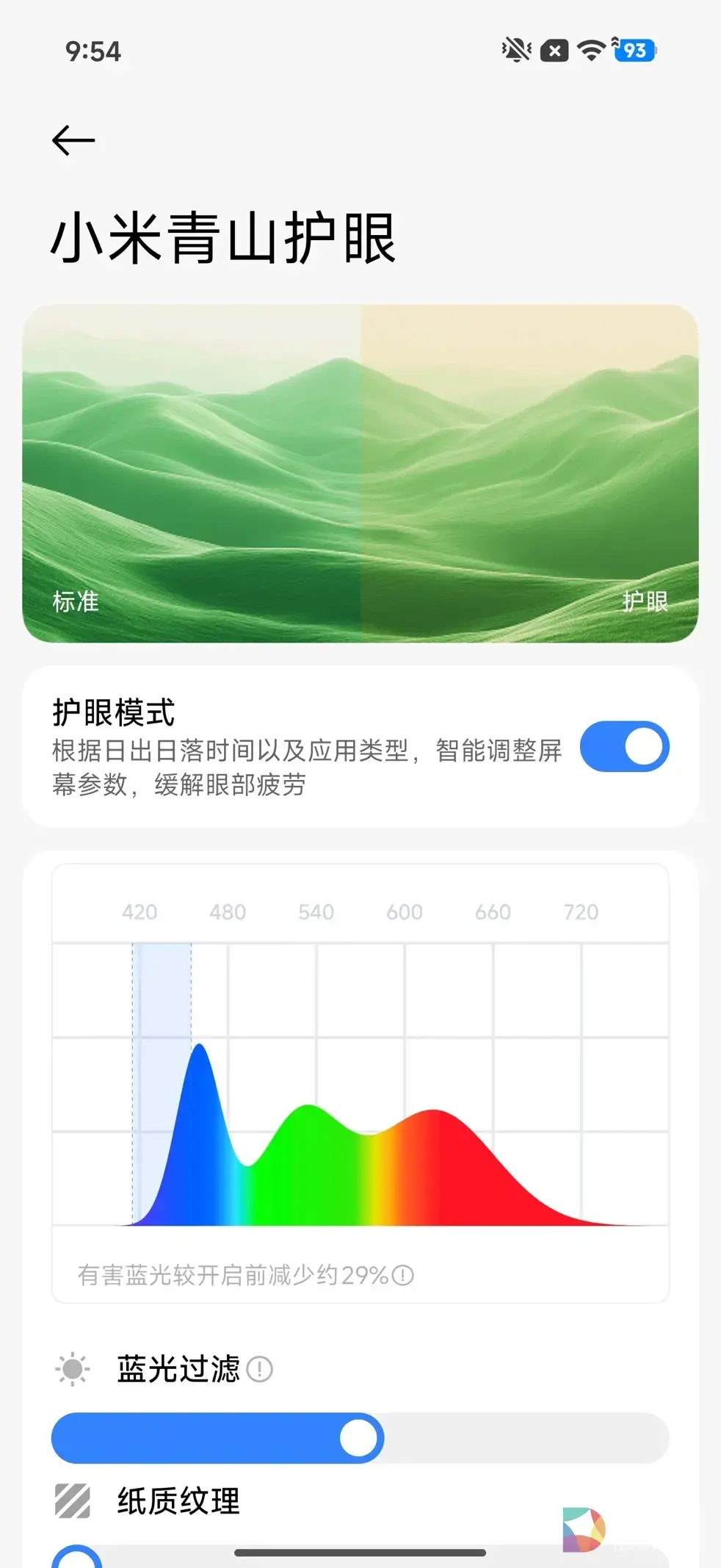 更值得一提的是它的护眼表现,REDMI Turbo 5的屏幕搭载了小米青山护眼技术,配合多重调光策略和有害蓝光过滤,暗光环境下长时间刷手机、看视频,眼睛的干涩、疲劳感远低于同价位的低频PWM调光机型,对于需要经常盯着手机屏幕的人群来说,这个细节的体验提升,远比高分辨率多出来的那一点像素更实在。
