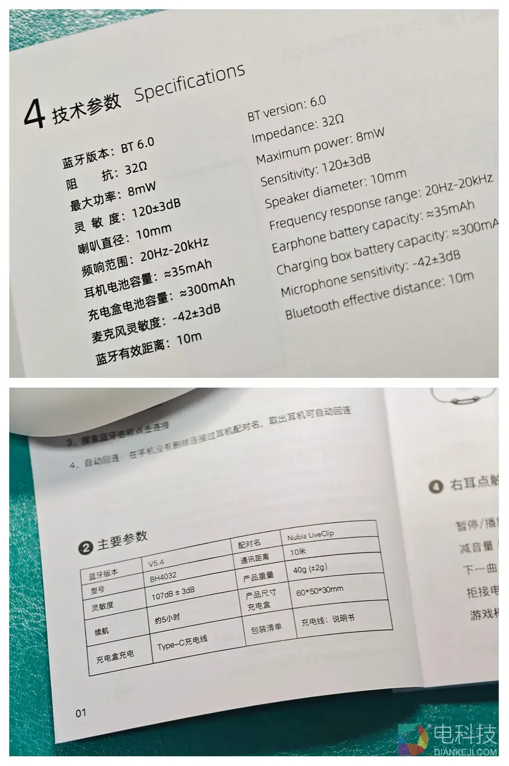 努比亚 LiveClip 则采用了成熟稳定的蓝牙 5.4 方案,连接稳定性完全能满足日常通勤、室内使用的需求,官方标称单耳约 5 小时的续航,日常通勤一天一充完全够用,整机仅 40g 的重量,便携性也十分出色。整体配置没有冗余的参数堆砌,主打稳定实用,符合大众用户的基础使用需求。