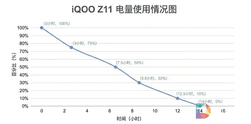 从实际结果可以看到,整整14个小时的游戏消耗,才将整个手机电量完全耗空,续航表现惊人。这个结果意味着轻度用户,甚至完全可以实现两天一充;即便是重度使用,一天高强度使用也毫无压力。