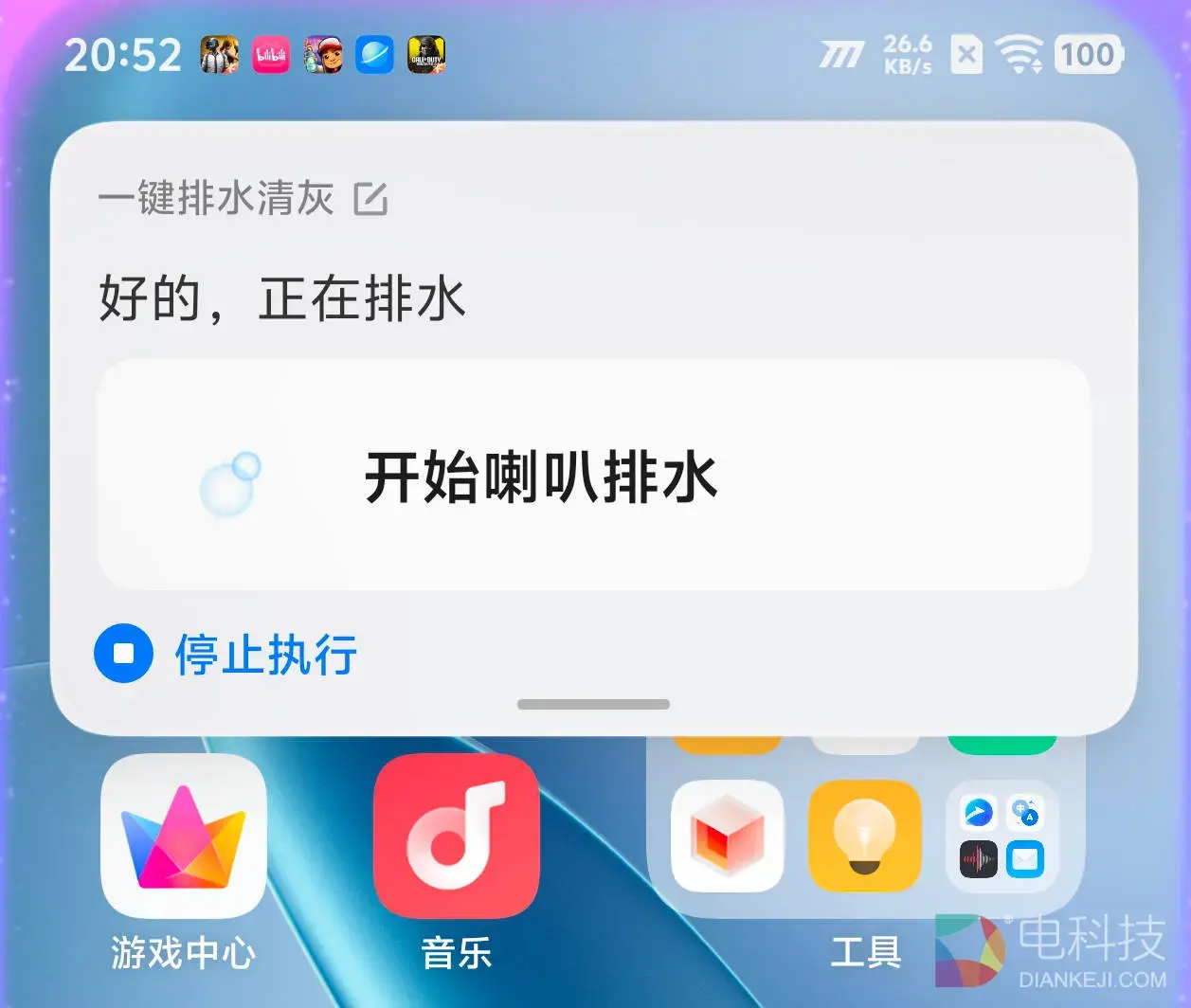 值得一提的是,iQOO Z11甚至还为机器配备了“一键排水清灰”功能。在蓝心小V中说出相应指令,功能开启后,通过声波震动技术即可将听筒、扬声器内的水珠灰尘强力排出。