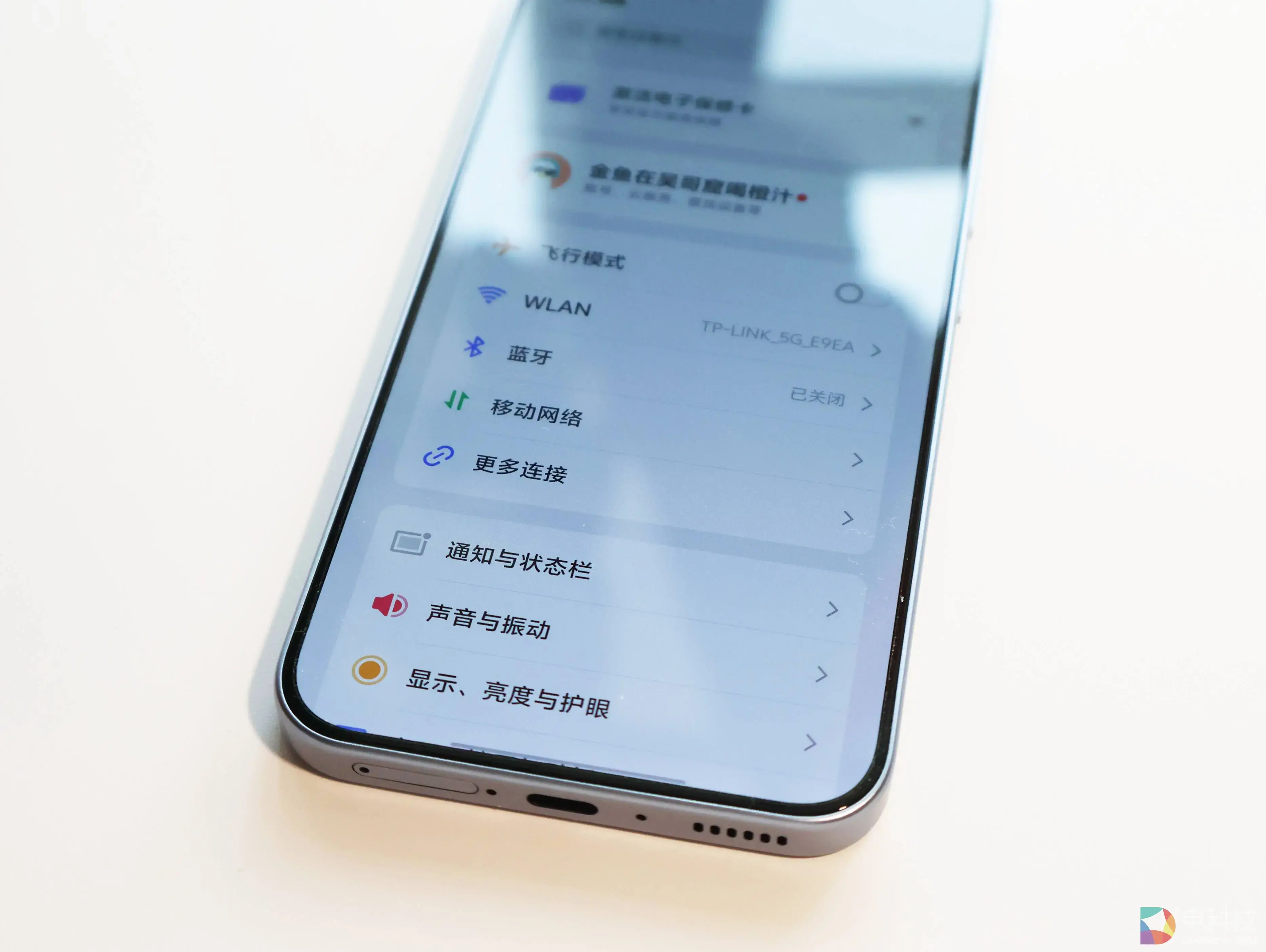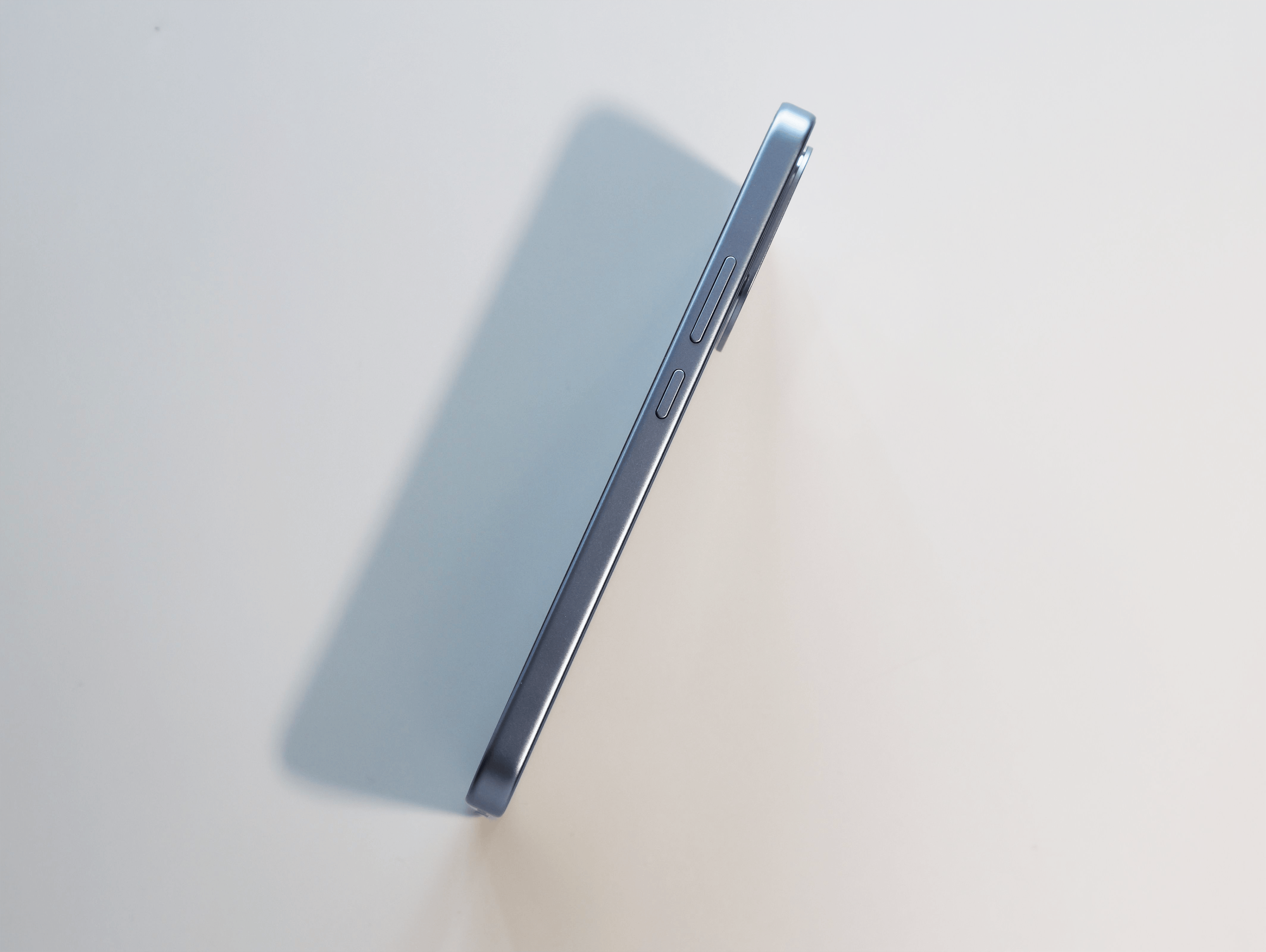 外观方面,此次iQOO Z11共有三种配色,分别为沧浪浮光、天光白和极夜黑。笔者手上的这台是“沧浪浮光”配色。背板采用了冷调蓝底配色,搭配上高精密纳米级光刻工艺雕琢的微结构,让产品在光线的不同照射角度下呈现出流动的光泽感。就好像水面被风拂过,泛起层层涟漪,有种“静中藏动”的视觉效果。
