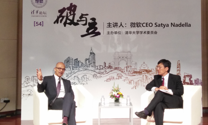 与中国学生对话、为“微软新视界”项目揭幕、在清华大学演讲、出席微软高端云客户峰会,纳德拉作为CEO访华的第一天(9月25日),行程“充实”却不出意料。
