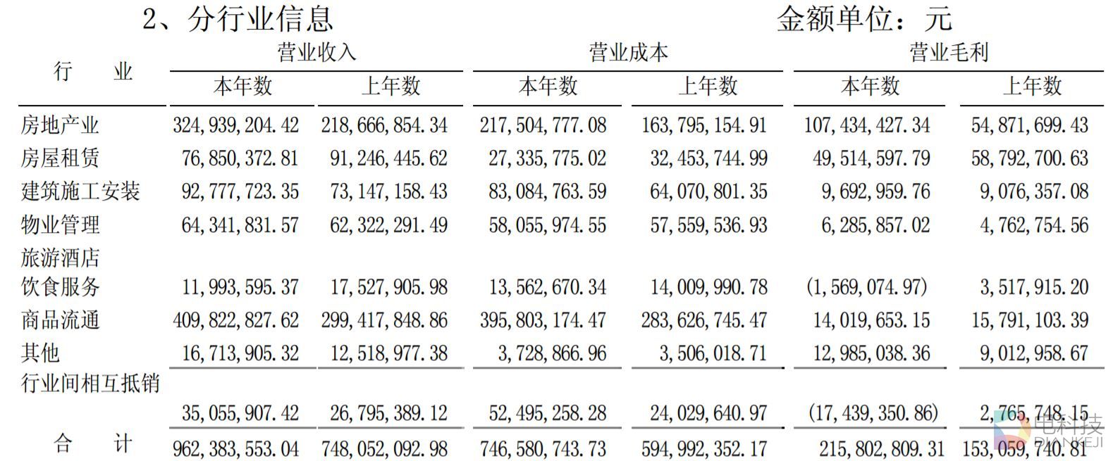 下表是深深房1993年报中披露的分行业收入情况。