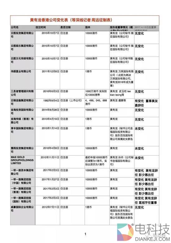 近期,黄有龙对其公司进行了紧急调整。根据香港公司注册处提供的信息,黄有龙在4月底完成了对旗下5家“一带一路”系列公司的调整。