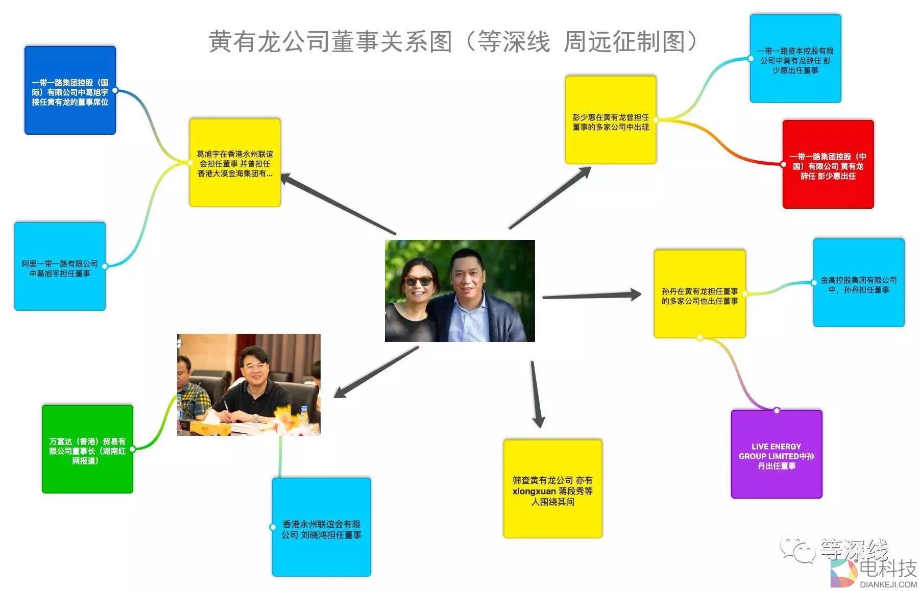 《等深线》记者在4月13日,首度披露了黄有龙担任董事的公司:一带一路资本集团有限公司、一带一路集团控股(中国)有限公司、一带一路集团控股(香港)有限公司、一带一路集团控股(国际)有限公司、ali one belt one road limited。其中,前三家“一带一路”公司,黄有龙辞去董事,由彭少惠担任董事;后两家“一带一路”公司,黄有龙辞去董事后由葛旭宇出任董事。