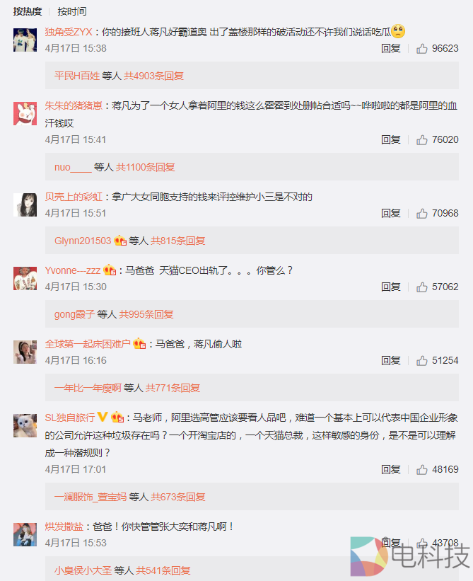 4月17日的那条微博,让淘宝和天猫的总裁蒋凡在阿里的地位变得有点微妙。它的影响已经造成:微博上出现了不少抨击蒋凡的言论,这些言论的发出者,不乏淘宝最主要的用户群体—女