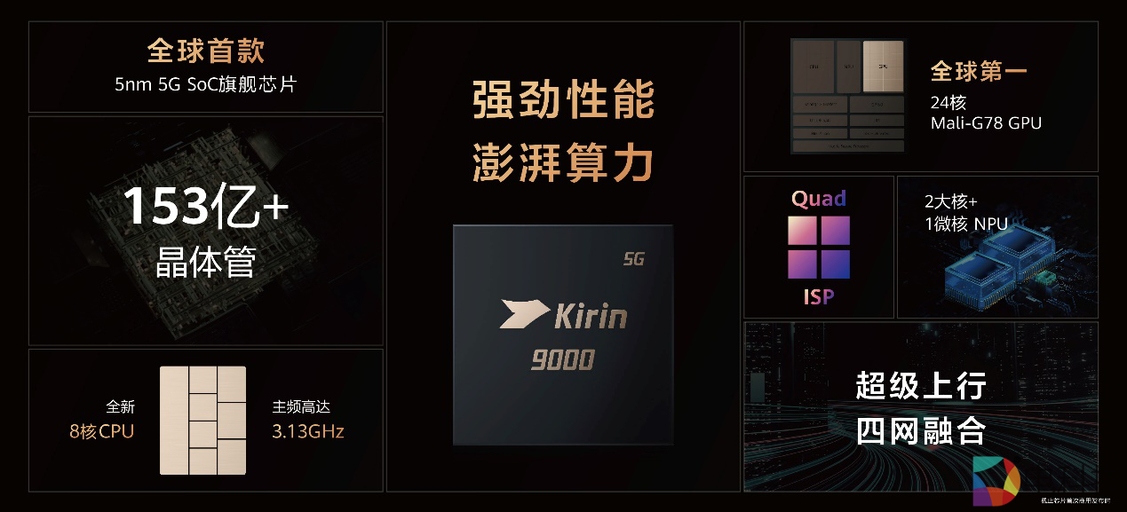 华为Mate X2搭载的5nm制程工艺的麒麟9000芯片,是目前晶体管数最多、集成度最高和性能最全面的5G SoC。华为Mate X2搭载超感知徕卡四摄,全时段全焦段。5000万像素的超感知主摄,拥有全球首款将RYYB滤色阵列、四合一像素融合、全像素八核对焦技术集于一身的传感器。