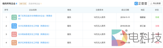 企查查显示,吴亦凡(WU YI FAN)共关联4家企业,其中存续状态仅1家,为厦门亿和云起文化传媒合伙企业(有限合伙),持股比例为99.99%,法定代表人为其表哥吴林。其余3家显示已注销,注销时间集中在2020年6月至9月,此前吴亦凡持股比例均为99.0%及以上。