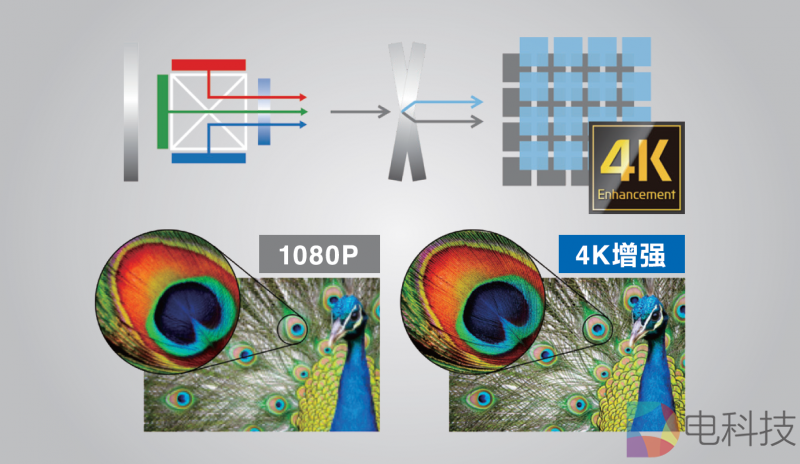 *3 4K增强技术使像素点沿对角线方向位移0.5个像素,分辨率翻倍达到3840x2160,清晰度超越了全高清的图像质量。物理分辨率仍为1920x1200。
