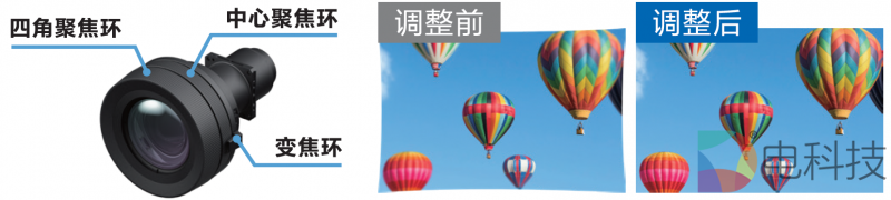 同时,该系列镜头具备上下各50%的大范围位移功能,不仅安装更加灵活自由,还能确保投影画面的平整度。配合四角聚焦调整功能,用户可对屏幕边缘焦点进行精细调节,即使在非平面环境下仍能保证整体画面的清晰。