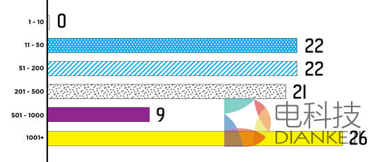 在我们调研的100家企业中,其中65家企业的雇员是在11到500个雇员的规模的,没有更低的了。