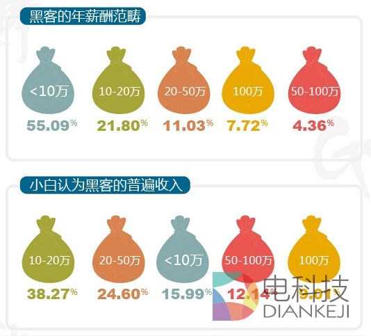 不管是黑帽子还是白帽子,他们的工作如此富有技术含量,毋庸置疑,工资应该很高吧!不过,现实是,他们中有一半以上的黑客年薪不到10万,月薪不足8000元,仅有不到5%的人年薪超过50万。