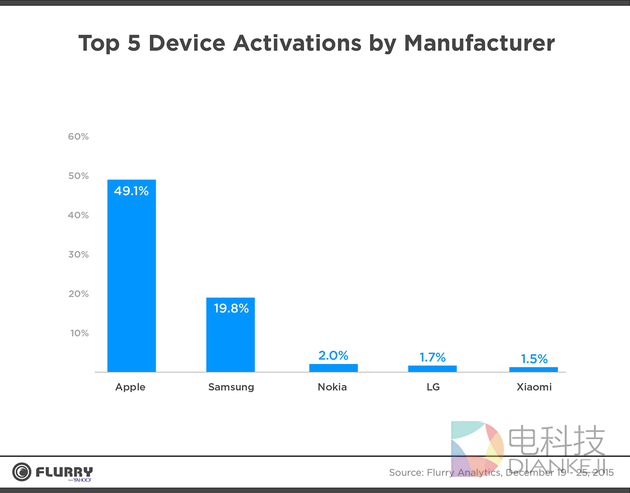 新浪科技讯 北京时间12月29日早间消息,每一年的圣诞节,新设备激活量和应用安装量都会创下全年最高记录,2015年也不例外,而苹果也再一次占据了主导。