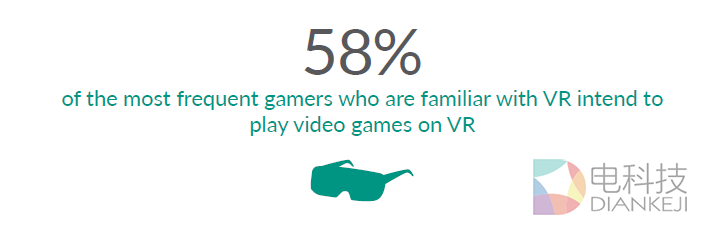 经常玩游戏的玩家中 55% 对虚拟现实都有所了解,40% 的玩家说会在一年内购买 VR 设备,58% 的玩家愿意用 VR 设备玩游戏