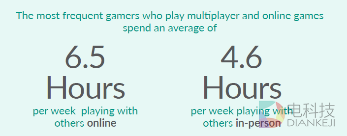 经常玩游戏的玩家进行多人在线的时间两年都为每周 6.5 小时