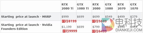 目前NVIDIA给出的RTX 2080 Ti建议零售价是9999元(FE版11999元),RTX 2080 5699元(FE 6499元)。