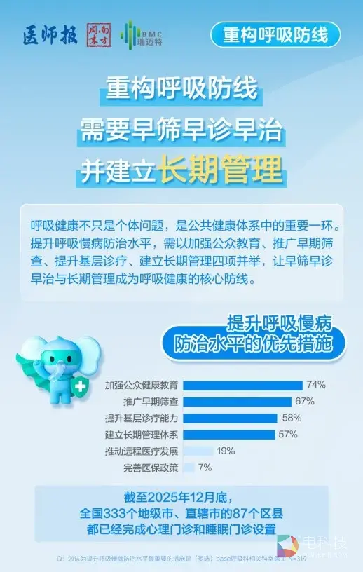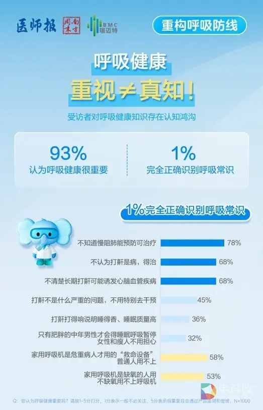 当前,随着“健康中国2030”战略的全面深入推进,呼吸健康正逐步影响着亿万群众的生活质量与生命健康。为精准洞察我国民众呼吸健康认知水平、临床诊疗痛点及居家管理需求,普及呼吸疾病早筛、早诊、早治和全周期管理理念,由南方周末、医师报发起和调查,BMC瑞迈特公益支持,共同发布《报告》,为全民呼吸健康管理提供数据支撑与行动指引。