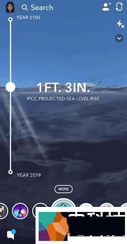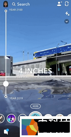 为了提高人们对于排放物如何影响环境的认识,Snapchat与联合国环境规划署合作,利用增强现实技术展示未来80年海平面将会增加多少。