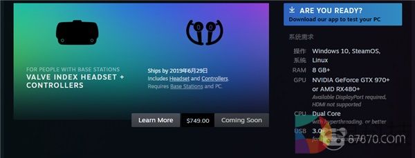 最后,在PC硬件配置参数方面,Valve Index的入门级需求并没有太多变化: