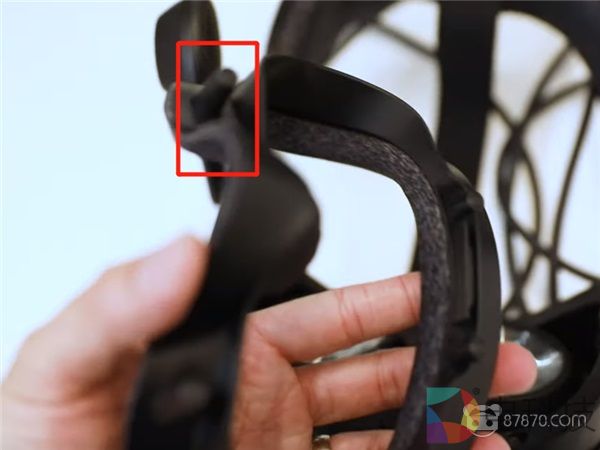 注意,Valve并没有简单地搞两个用魔术贴固定的海绵圈来糊弄人,恰恰相反,Valve Index的面部衬垫很明显拥有刚性构件,并且还用两个非常醒目的“桩子”(上图红圈位置)将衬垫的柔性构件“支撑”在了头显本体之外,从而让软垫与头显之间存在一道没有电子元件、且并不属于头显本体组件的硬质“遮光罩”,知道这意味着什么吗?