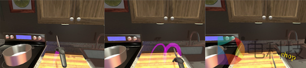 该游戏的目标,是按照指令使用正确的对象在虚拟厨房中执行一系列操作。这个教学的设计考虑了多玩家的参与,其中一个学生沉浸在VR中,其他则在现实世界参加。这是为了解决很多教育机构的空间不足限制了VR设备的数量。虚拟环境中的参与者扮演“表演者”的角色,而VR外部的参与者则是观察者。