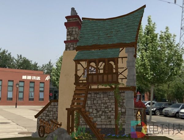 在笔者的面前,利用iPad Pro后置摄像头实时拍摄的小广场实景中,一栋仿佛来自童话故事的小楼拔地而起,完美地覆盖了一座原本平淡无奇的变电箱——最引人瞩目的是,这绝不仅仅是什么“叠加在实拍画面上的贴图”那么无聊的把戏:笔者试着迈开步子,左转右转、前前后后,看了几圈,不同的角度位置上,这栋凭空出现的AR小楼所呈现出的3D透视关系,皆是无懈可击。