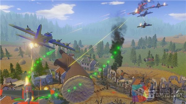 《Final Assault》采用的是目前VR内容领域非常少见的即时战略游戏类型,我们需要利用体感控制手柄排兵布阵,并指挥自己的手下(不仅仅是步兵和坦克,也有飞机)与来袭的敌人短兵相接殊死搏杀。尽管采用了卡通风格的夸张画风,但看到一架架飞机在我们手势的引导下与敌人展开狗斗,看到剧烈的爆炸气浪将敌我双方的小兵掀上半空,那种仿佛身临其境但又凌驾其上的代入感还是挺让人印象深刻的。