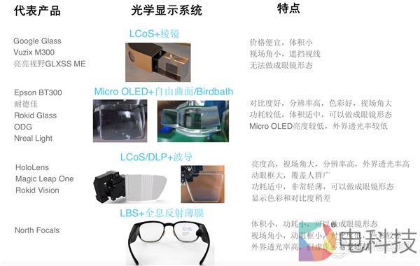 这里做了一张简单的AR光学显示系统的分类和产品举例: