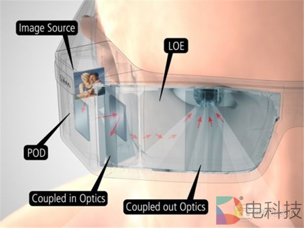 光波导的这种特性,对于优化头戴的设计和美化外观有很大优势。因为有了波导这个传输渠道,可以将显示屏和成像系统远离眼镜移到额头顶部或者侧面,这极大降低了光学系统对外界视线的阻挡,并且使得重量分布更符合人体工程学,从而改善了设备的佩戴体验。