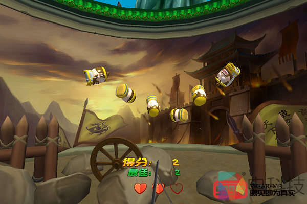 《快斩三国》是我体验的第二款游戏,它来自国内著名的VR游戏团队星为棋。在玩法上,这款游戏有点类似于VR版的《水果忍者》,只不过玩家这回砍的不是水果而是三国里的小兵和武将。对于这样一款强调动作精准性的游戏,VIVE Focus Plus手柄的表现非常完美,游戏中的刀剑随着我的动作上下纷飞,而敌人则被我杀得丢盔卸甲。