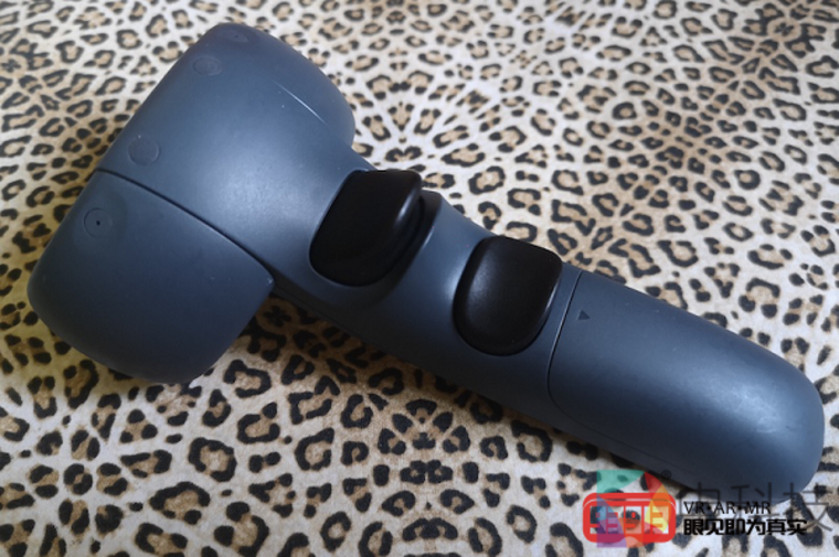这里我还想特别说说VIVE Focus Plus手柄上的两个扳机键的弹性。位于上方的扳机键的弹性与VIVE手柄保持一致,而位于下方、对应中指的手柄按钮的弹性则更“硬”一些。这样的设计其实与原有VIVE手柄侧键的功能有关,该键在游戏中的主要功能多为捡枪、捡子弹,因此其长按操作颇多。VIVE Focus Plus手柄上的手柄按钮完美继承了前者,其略硬的弹性非常适合中指内扣长按,同时也避免了食指频繁操作时可能导致中指的误操作,这个细节设计确实值得点赞。