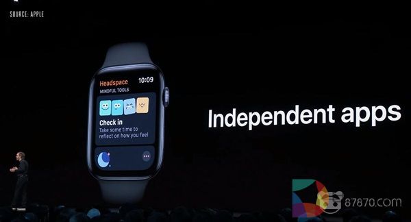 发布会上展示了几款应用商店中的Apple Watch独立应用,包括有声读物、语音备忘录、计算器、运动和健康应用。这些应用无需iPhone手机的支持即可在Apple Watch直接运行,摆脱对于手机的依赖。