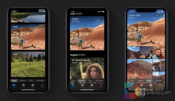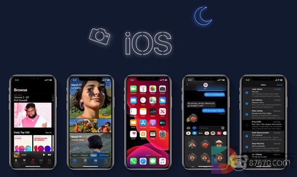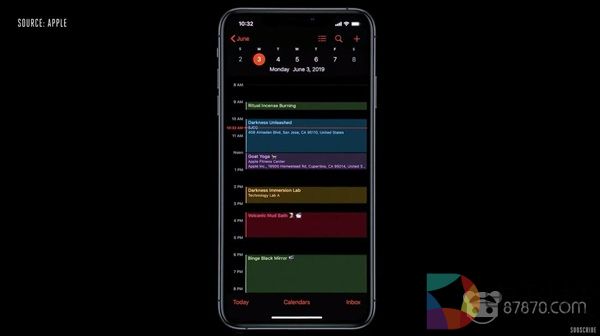 在这次更新中,iOS 13加入了大家期待已久的黑暗模式(Dark Mode)。在该模式下,iOS 13大部分核心应用包括日历、照片和音乐应用都会自动将原先的背景由白色变为黑色,同时改变字体颜色以适应在光线较暗的地方使用。
