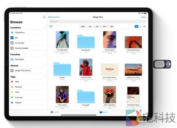 文件系统也进行了更新,除了加入了文件预览、快捷操作和详细信息查看功能,新的文件系统还可以通过iCloud Drive与PC之间进行文件夹分享。此外新的iPad OS支持插入U盘或者接入相机来读取其中的数据。