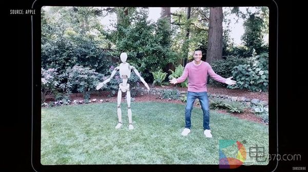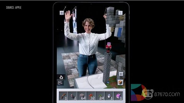 大会上苹果还邀请了Mojang演示iOS版本的《Minecraft Earth》。该版本的《Minecraft Earth》应用了上面提到的iOS独占特性,现场演示中我们能看到演示者正确的挡住了位于她身后的虚拟物体。