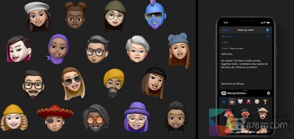 去年WWDC上苹果发布了Memoji功能,让用户可以创建与自己十分相似的Animoji形象,iOS 13中这一功能再次升级,让用户拥有更多可定制的细节,如耳环、牙箍、舌环等等。此外Memoji的缩略图还可以在Message应用以及微信中使用,发送给自己的朋友。