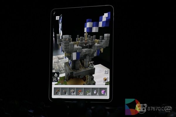 会上,Mojang的员工演示了AR版《我的世界》的玩法、他们用iPhone和iPad在桌面上搭建了一个城堡,然后走进一个真人大小的房子里,在那里可以挖出各种资源好敌人。