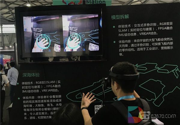 无独有偶,在2017 eSmart展会上,我们又看到了有展商带来了兼顾VR/AR机能、支持手势识别定位的头戴式显示设备:很显然,尽管在产品形态上存在明显差别,但在技术层面上,起步阶段的VR/AR设备还是具备很多的共通之处,因此“两手抓,两手都准备赢一把”的国内VR/AR企业在那个时代可谓不胜枚举。