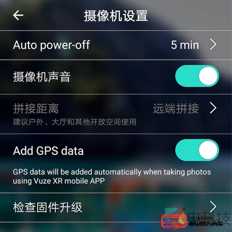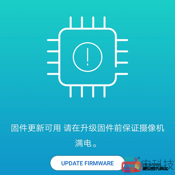 在下载并安装APP之后,我们如果想要将APP与Vuze XR进行连接并使用,首先需要升级摄像机的固件。下面我们就来简单介绍固件升级的过程。