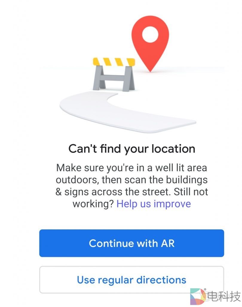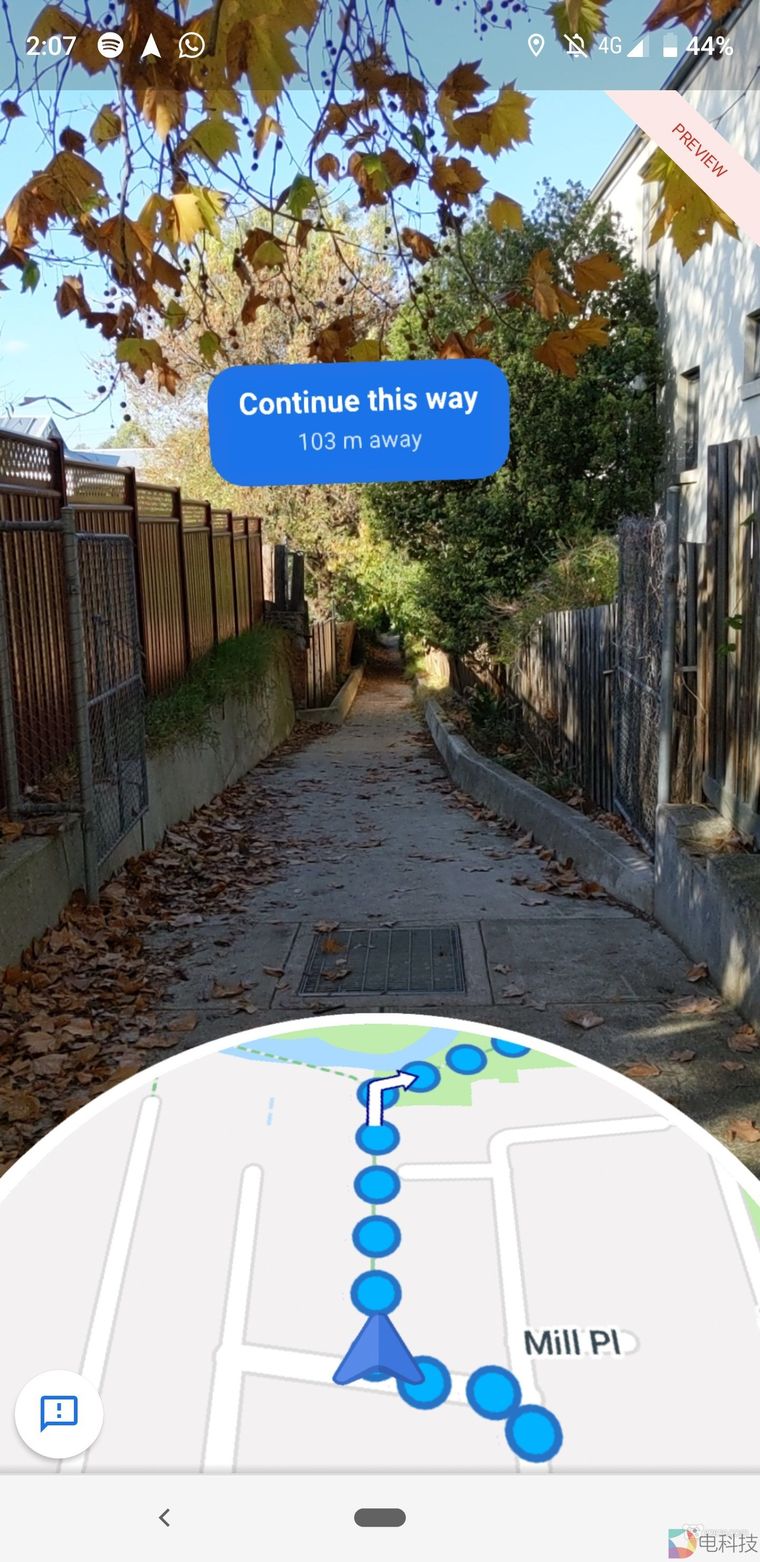 谷歌地图是通过谷歌街景的数据来确定你的位置为你提供方向指引的。谷歌地图将用户引导到一条没有被谷歌街景收录的道路上似乎有些奇怪,它应当知道这条道路无法在AR功能中被识别。但这只是一个小问题。