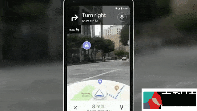 当你使用谷歌地图步行模式的导航功能时,就会出现AR功能的选项。激活后,你就可以通过手机来观察周围的环境,谷歌地图会在摄像头拍摄到的画面上覆盖数字的导航提示。