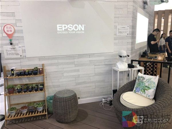 展台上,爱普生搭建了多个不同场景下的AR体验区。包括家庭中的观影娱乐,以及把AR用于工业、医疗、汽车等行业领域。