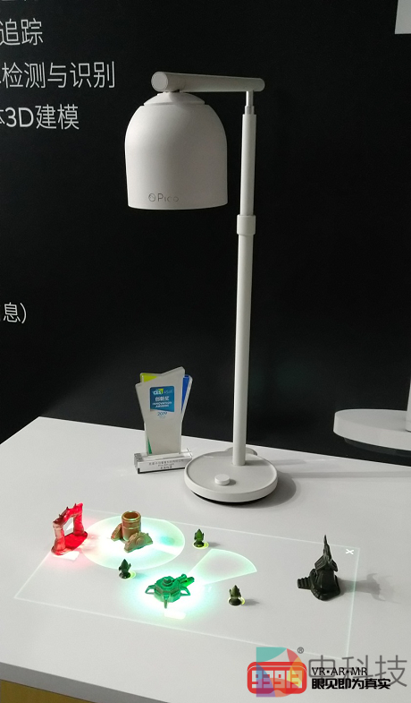 本次,Pico还带来了旗下自研基于计算机视觉和人工智能技术的投影灯Pico Air Light。有别于一般的投影仪,Pico Air Light小巧圆润的机身集合了投影、深度信息检测、音响及照明的功能,除了能提供基本的触屏操作外,还能识别物体、基于识别的物体或轮廓展示相关信息,甚至完成三维空间交互。凭借生活化的设计理念和新颖的交互方式,Pico Air Light荣膺CES Asia 2019创新奖获奖产品,其创新实力受到全球顶级设计和产品专家认可。同时,Pico展台也展出了旗下基于高通平台的3D智能摄像头产品Pico Air Camera,可以通过面部识别、手势识别,结合深度数据和人工智能图像处理技术,将3D感知能力在实际生活场景中的应用具体呈现。