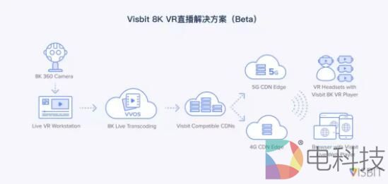 Visbit为此次活动提供了8K实时云转码和8K实时播放器。视频流通过相机采集和拼接软件合成以后,以RTMP信号推送到Visbit在日本设立的云进行编码和转码,再通过KDDI专门铺设的网络传输到现场设立的3台Pico G2 4K头显上,并用Visbit的8K实时播放器进行实时解码和播放出来。