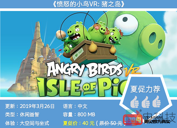 如果你是一名《愤怒的小鸟》系列资深玩家,体验过各式各样的版本的话。那么这款VR版则会带你回到最初的上手体验时,所收获的那份感动与回忆。在《愤怒的小鸟VR:猪之岛》游戏里,没有任何氪金道具等影响游戏平衡的东西,只有通过技术与运气才能获得满星通关。