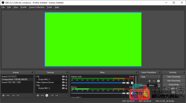 启动Oculus Quest上的混合现实捕获应用程序,并使用新的Oculus混合现实插件合成OBS(一个免费和开源的跨平台流媒体和录制程序)中的镜头。