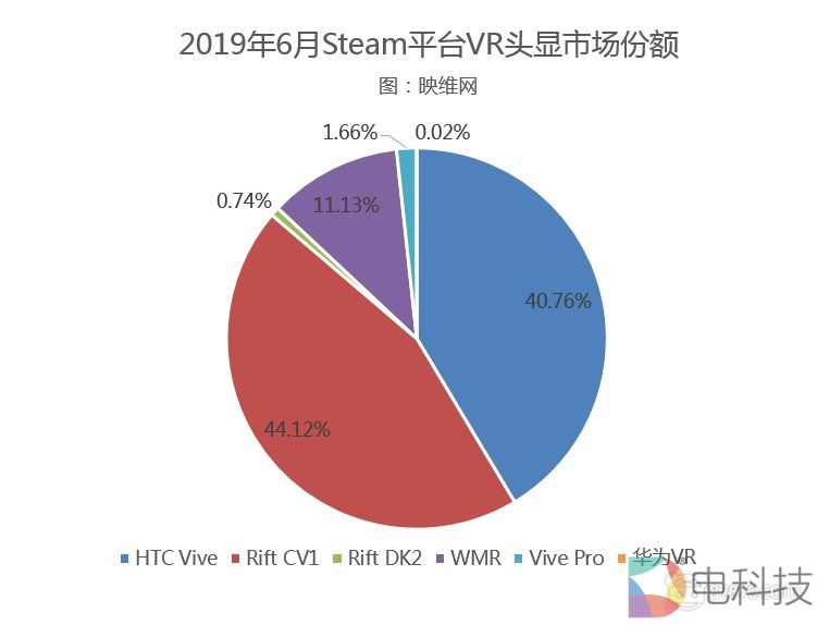 Valve今天公布了2019年6月的“Steam硬件和软件调查”数据,其中Oculus Rift在头显份额占比方面出现了一定的下滑,而WMR的份额占比则重新恢复了上涨趋